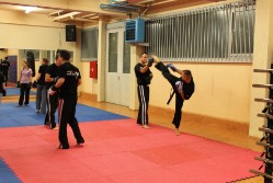 2. Techniktraining: Üben der einzelnen Fuss- und Fausttechniken und deren Kombination.